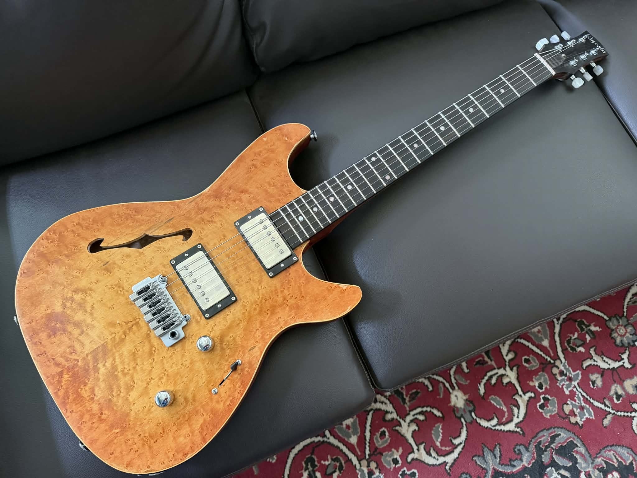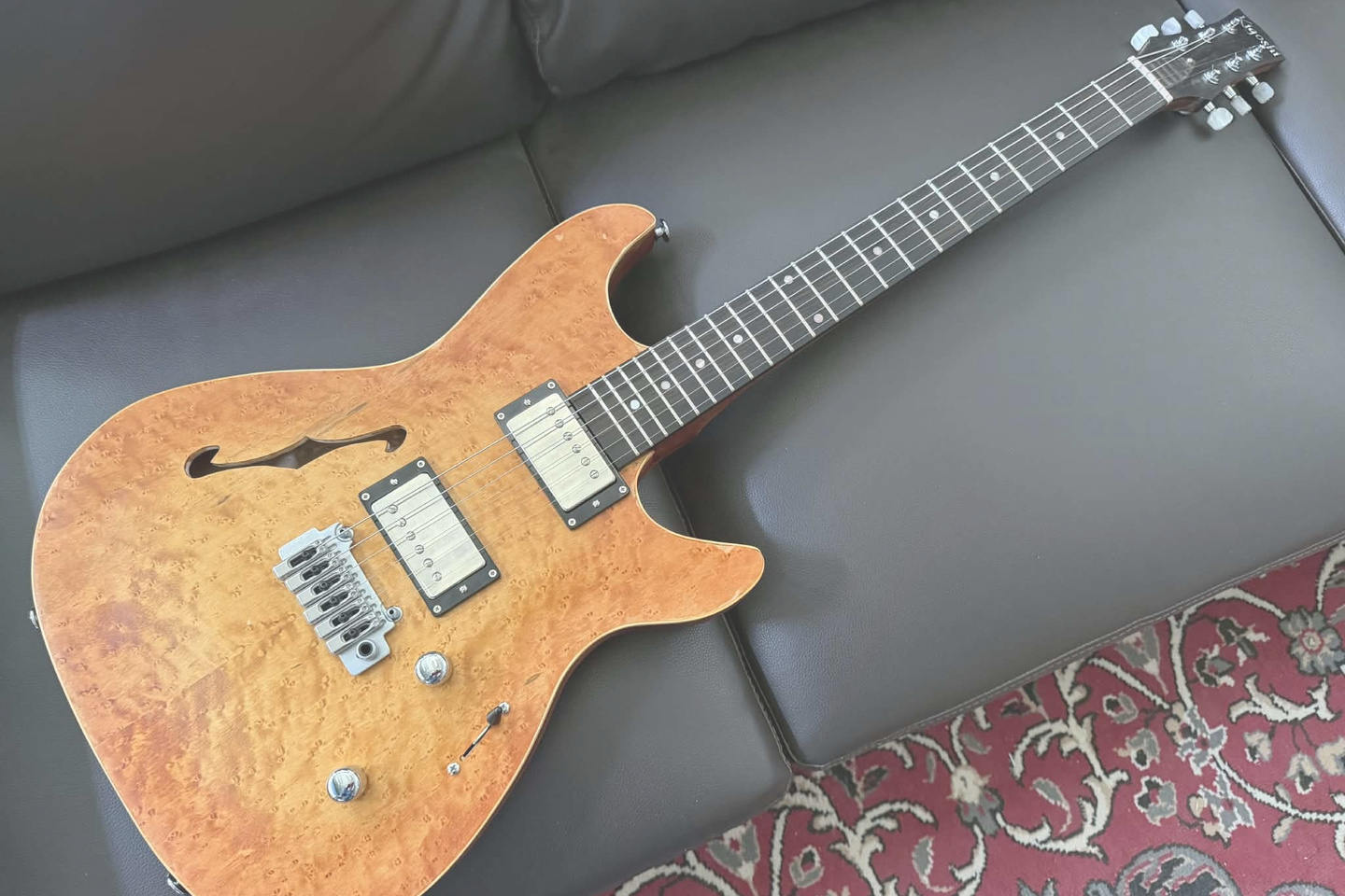 最大の特徴は、独自設計のセミホロウ構造。生音のアコースティックな響きを最大限に活かし、空気感のある豊かなトーンをそのままアウトプット。弾いた瞬間に感じる“鳴り”の良さは、この構造ならではの魅力です。
